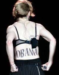 AFP - Provocative pop star Madonna revealed more than skin when she pulled off her top at her New York concert Thursday -- showing off black letters on her lower back spelling "OBAMA."